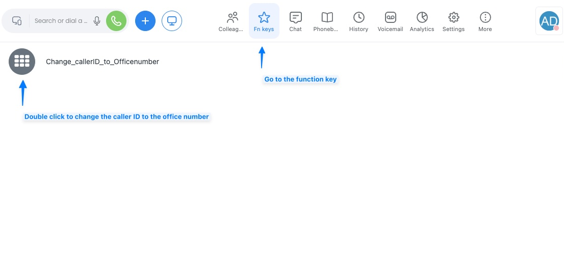 - If your administrator has set up a switch to toggle between outbound numbers, the switch button is located under the function keys